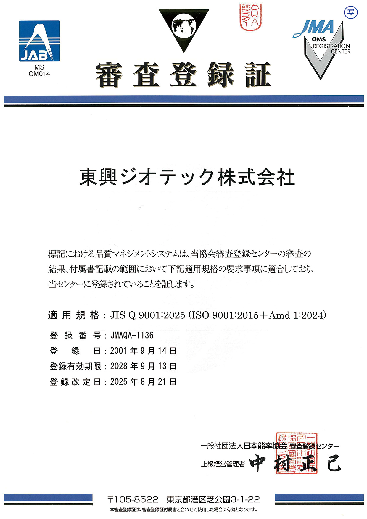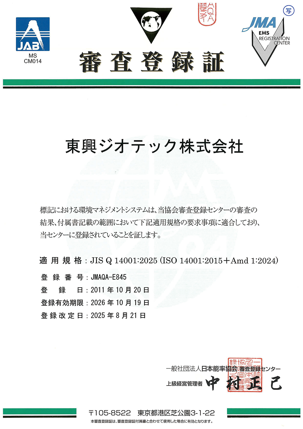 | 登録番号 | JMAQA-1136(品質) JMAQA-E845(環境) |
